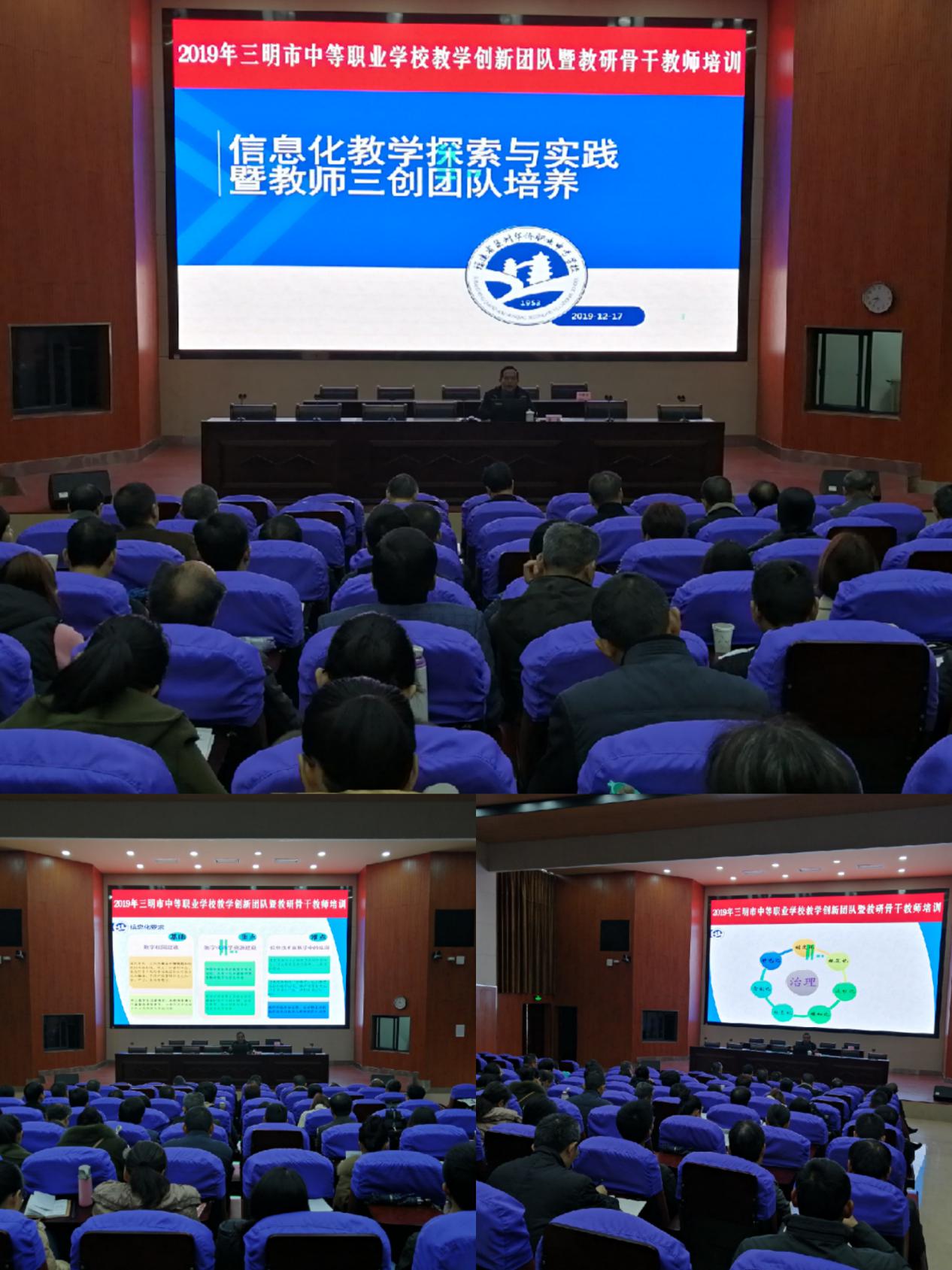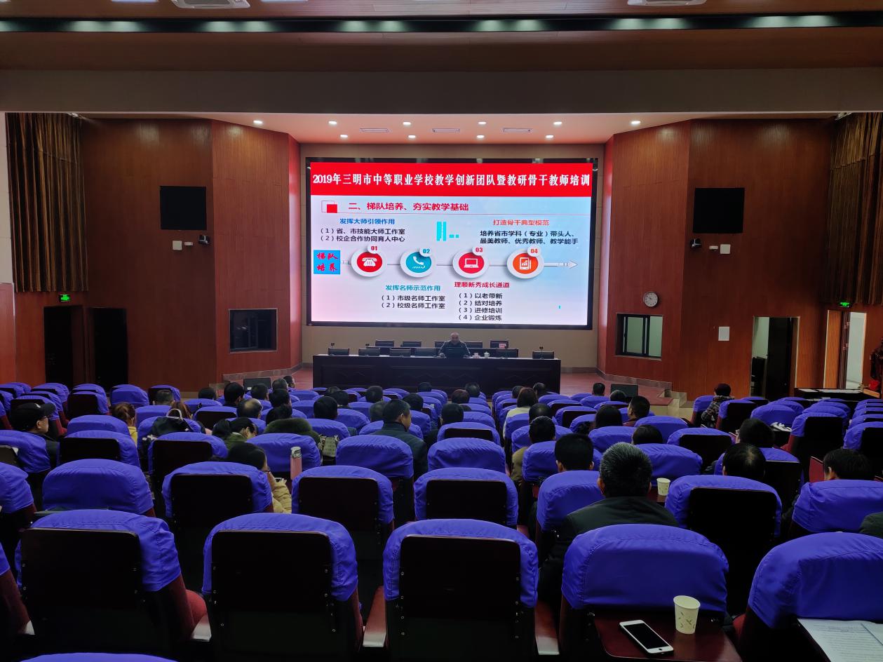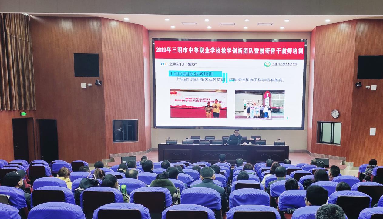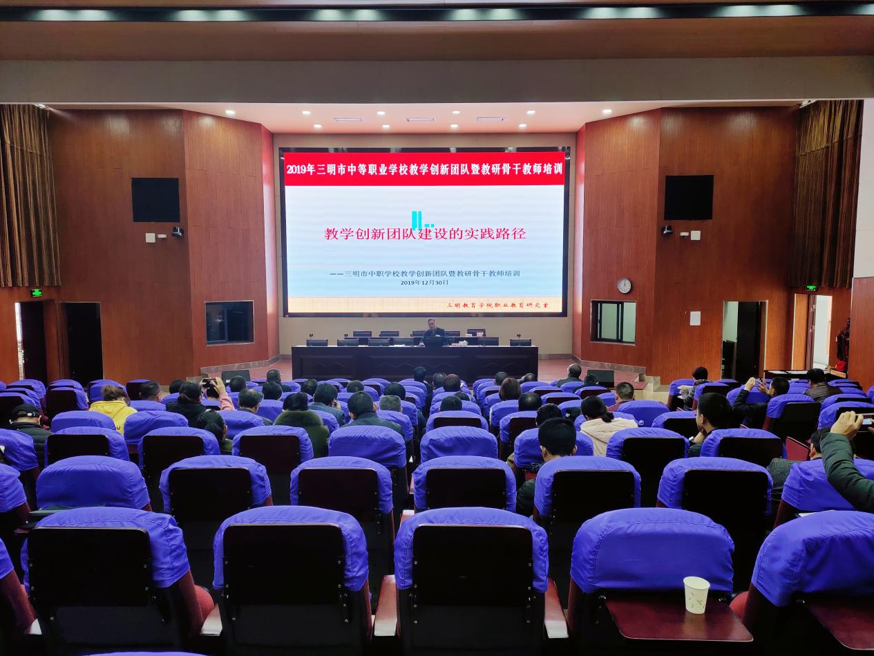2019年12月30-31日,由三明教育学院主办的2019年三明市中等职业学校教学创新团队暨教研骨干教师培训活动在YABO.COM报告厅举行。本次培训面向全市中职校教学分管副校长、教学教研工作负责人和主干专业建设负责人,参训人员达70余人。
