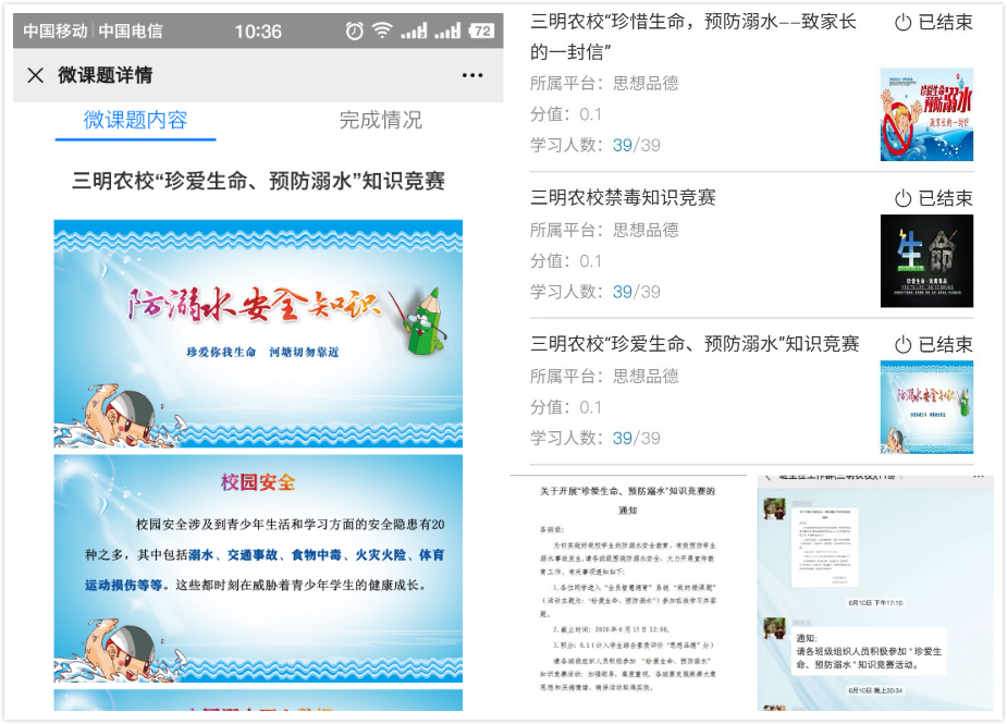 四是利用“安全教育平台”开展预防溺水相关知识的学习,提高了学生安全防范意识。