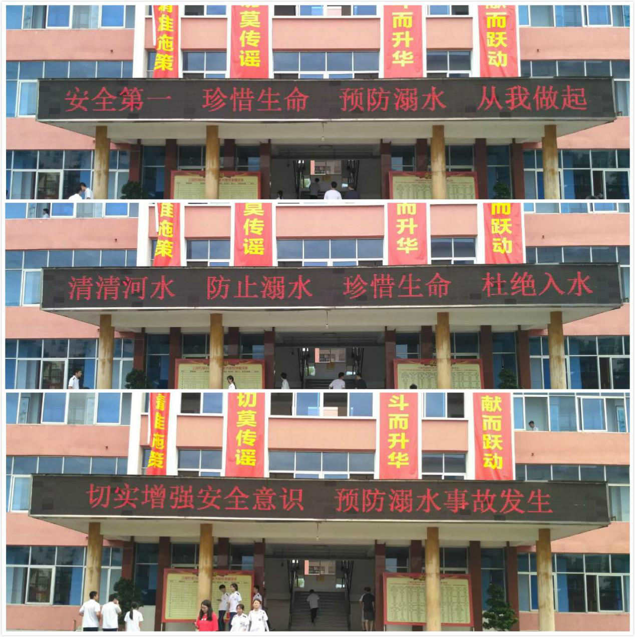 二是加强宣传,不断提高师生的安全意识。利用开展主题班会、广播、知识展板、LED屏等各种形式,对学生进行反复多次的预防溺水安全教育,树立安全意识,提醒学生预防溺水牢记心中。