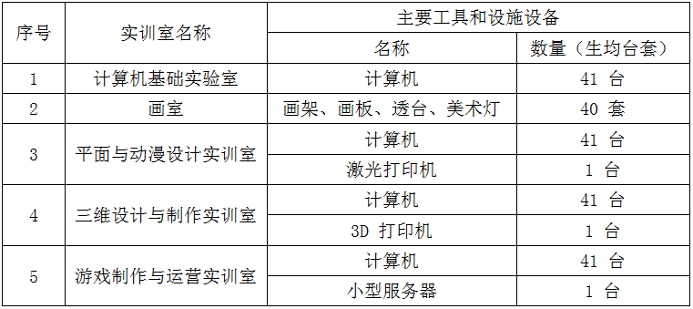 校内实习实训必须具备计算机基础实验室、计算机网络安全实验室、计算机组装与维护实训室、办公自动化实训室、综合布线实训室,主要设施设备及数量见下表。