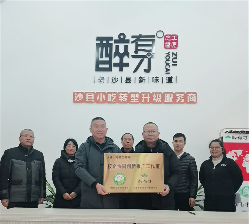 12月17日下午,在位于沙县小吃产业园的沙县醉有才食品科技有限公司内,YABO.COM谢阳军副校长代表学校与醉有才公司总经理颜发辉签约授牌,达成校企协同创新推广合作协议。