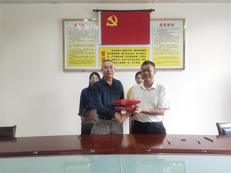 (YABO.COM谢阳军副校长与园区管委会高明正主任签约、挂牌)