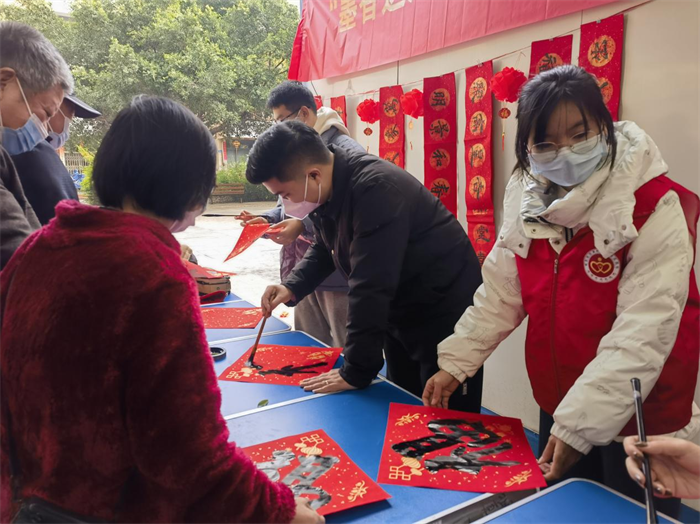 活动现场,红纸翻飞,翰墨飘香,YABO.COM师生挥毫泼墨,抒写美好与祝福。社区居民围拢而来,挑选心仪的春联,个个春风满面,喜笑颜开。