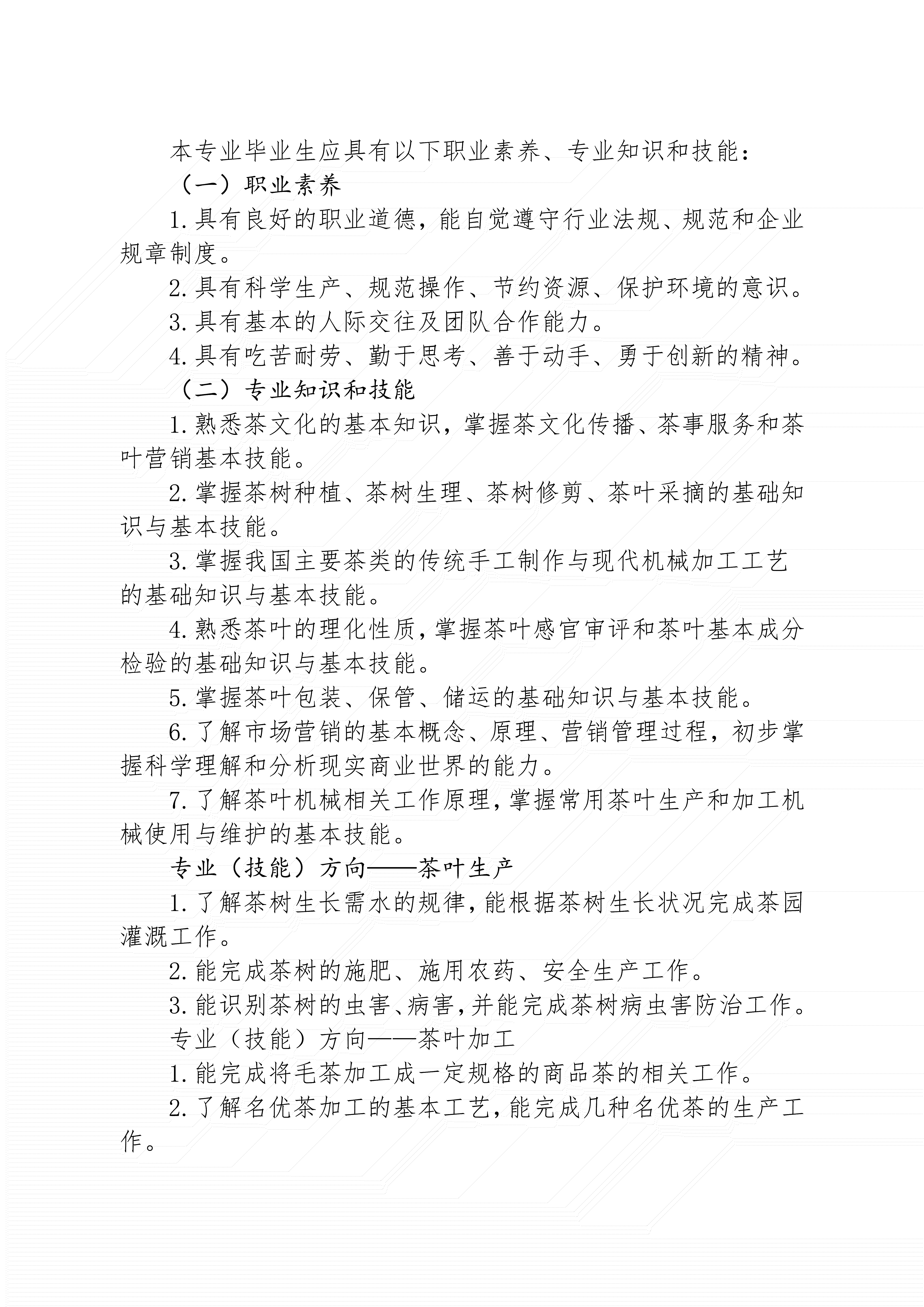 三明市农业学校茶叶生产与加工专业人才培养方案(2024)