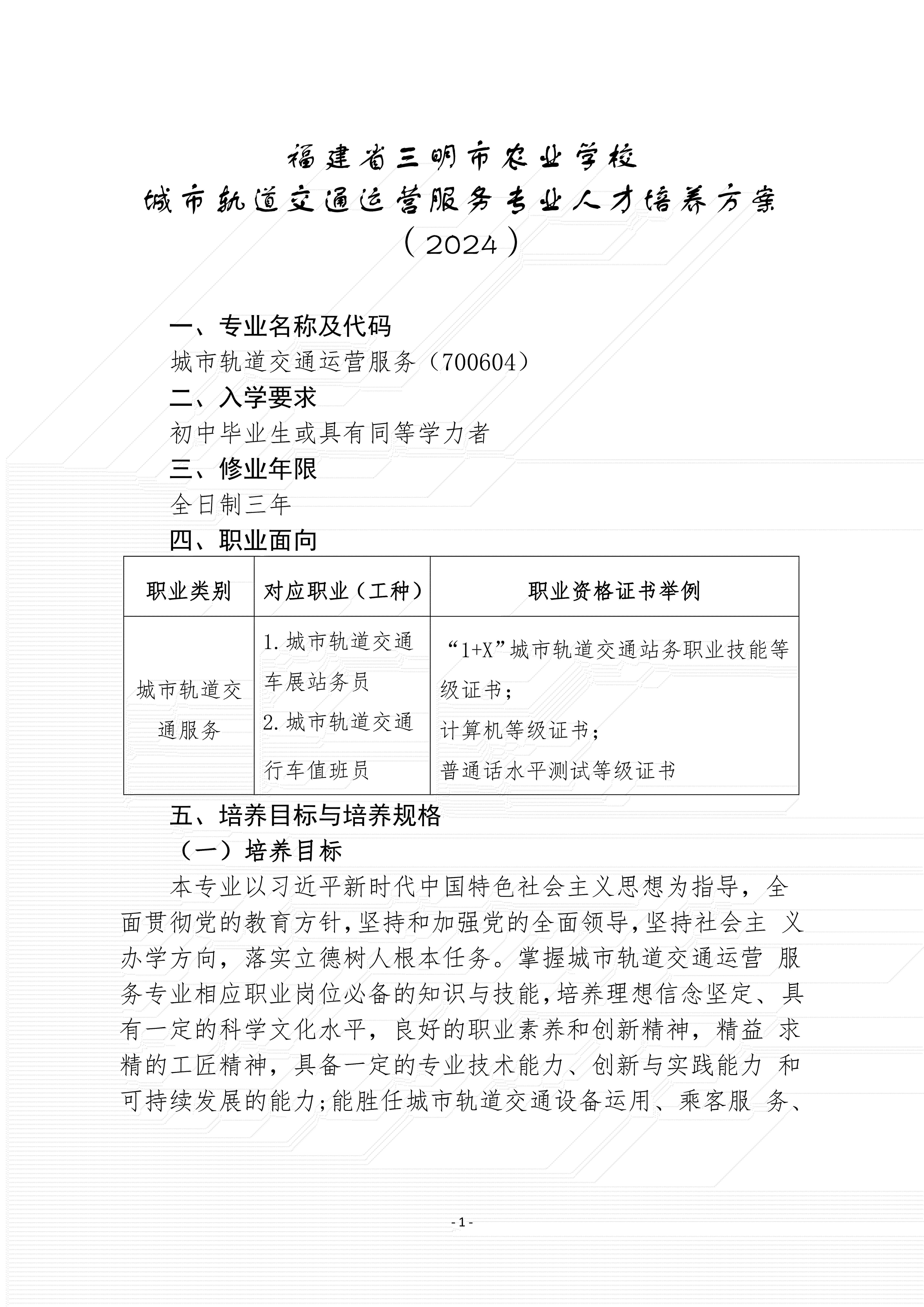 三明市农业学校茶叶生产与加工专业人才培养方案(2024)