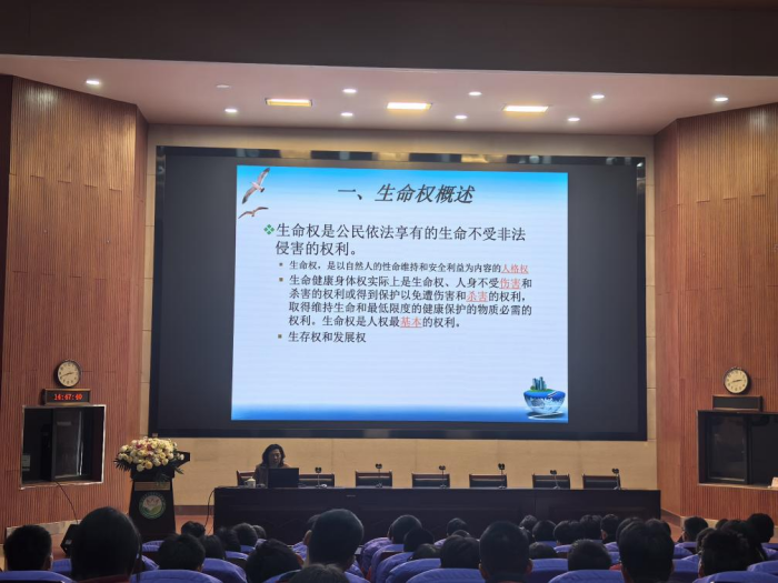 在讲座中,林艳玉女士用平实易懂的语言,深入浅出地解释了生命权的含义,并结合自己多年的工作实践,特别是针对校园欺凌等青少年常见的法律问题,选取了一系列真实案例进行剖析,逐一对照相关法律规定,为同学们详细解读了案例背后的法律知识。在讲座过程中,林女士还与同学们积极互动,并耐心为同学们答疑解惑,使得整个会场氛围庄严肃穆又不失活泼。通过林女士的讲解,同学们不仅深刻认识到了生命权的宝贵,还学会了在面对不法侵害时,如何运用法律知识维护自己的合法权益。同时,林女士鼓励同学们树立正确的价值观,学会尊重他人,避免成为校园暴力的施暴者或旁观者。
