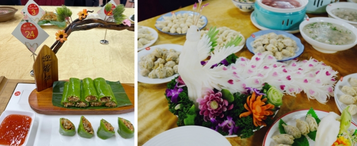 比赛现场,参赛选手们准备食材、制作馅料、蒸煮煎炒、雕花摆盘……每一个细节都精益求精,每一个步骤都游刃有余,每一道作品都匠心独具,他们用精湛的技艺和独特的创意,呈现了一场视觉、嗅觉、味觉的多重盛宴。数小时的激烈角逐后,选手们陆续完成比赛任务,芋饺、滚粉豆腐丸、金包银、烧麦、泥鳅粉等沙县小吃琳琅满目,香气四溢,让现场的评委和观众目不暇接。