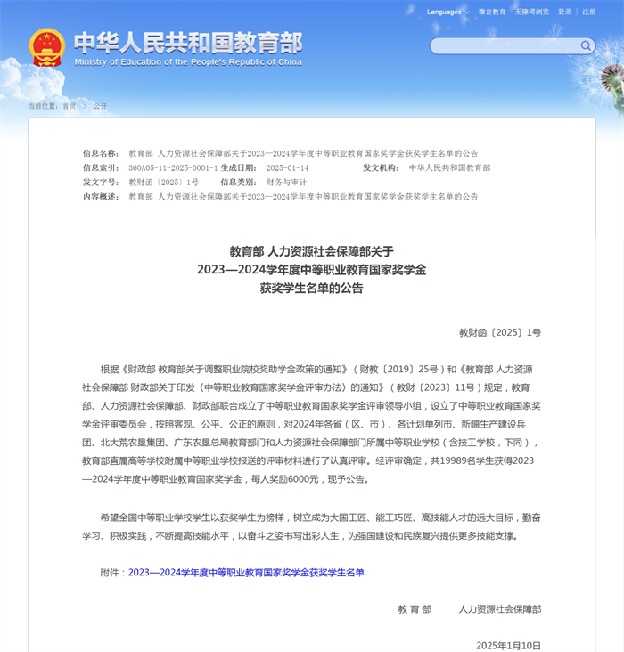 2024年12月 2023-2024学年度国家奖学金